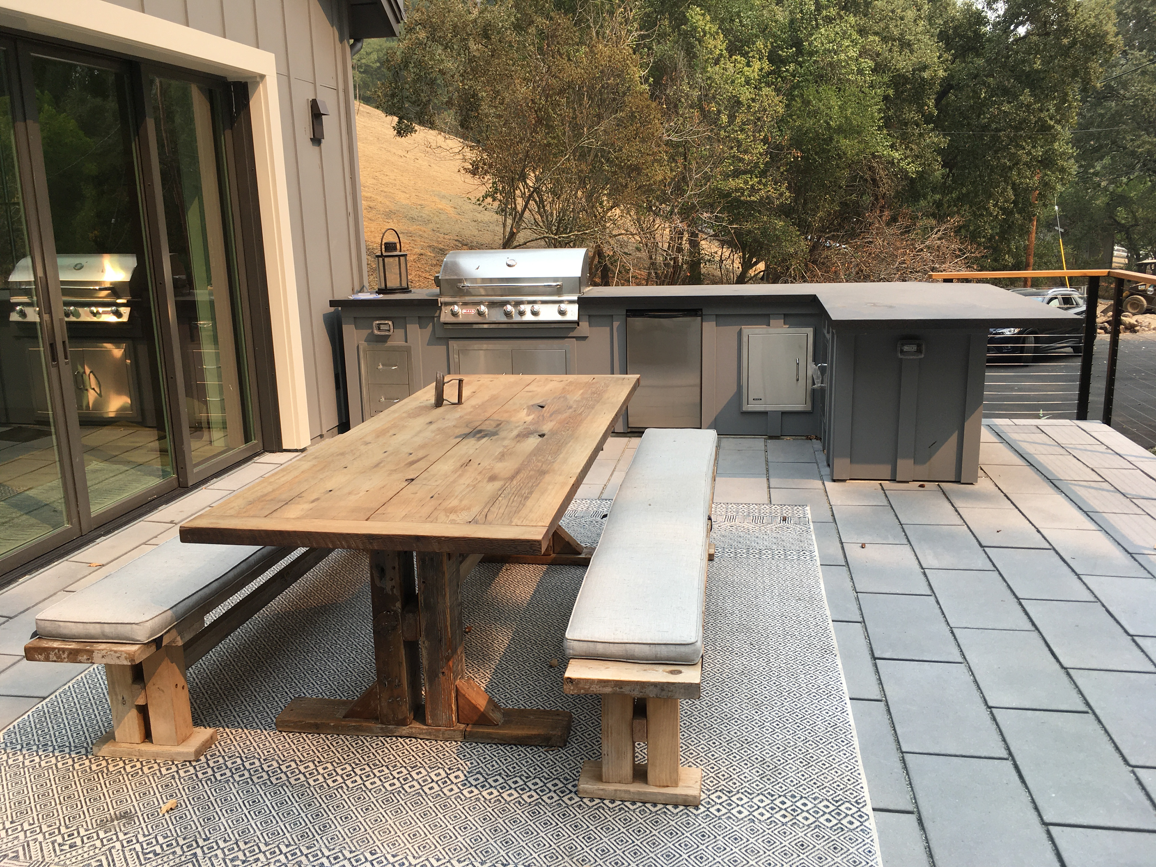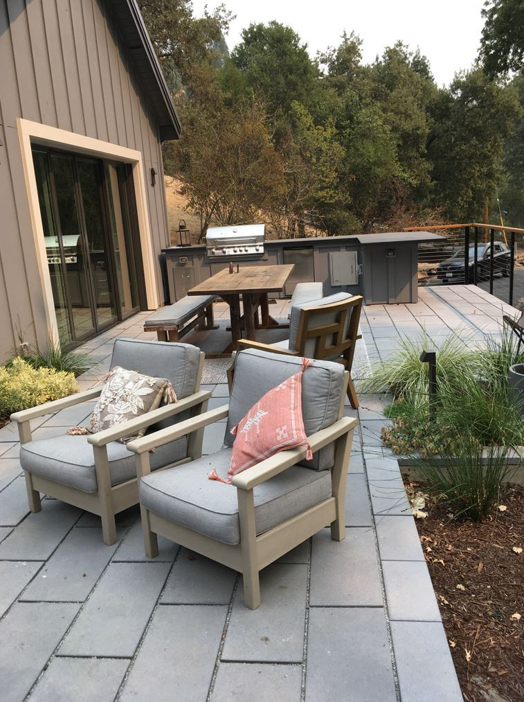 Modular units prevail in this design and include rain tanks, patio pavers, and permeable driveway and entry pavers, all sensitively sited just outside the tree protection zone of giant heritage oaks.
