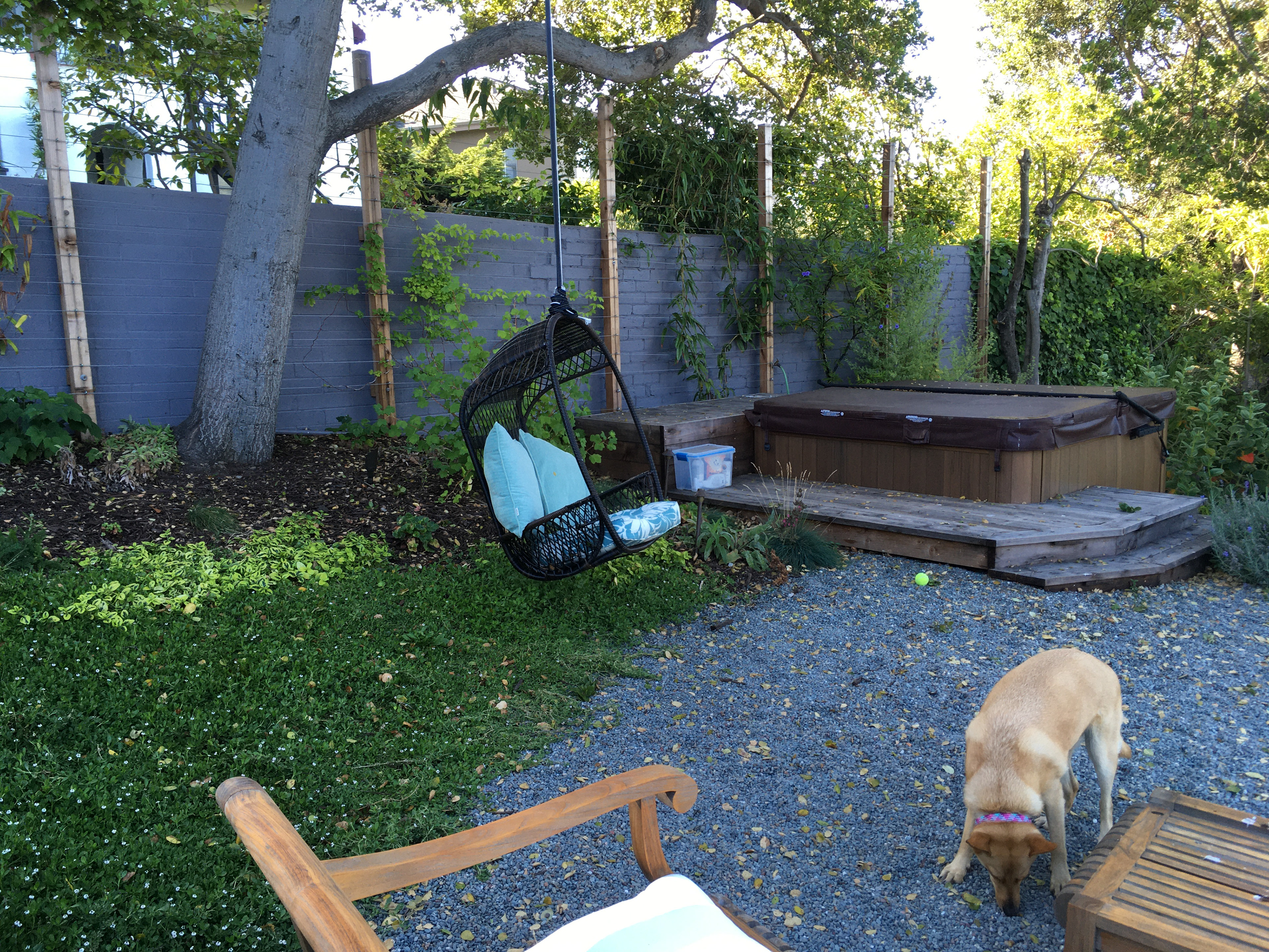 Poor soil on a steeply sloping front yard is regenerated with soil fracturing, compost tea application and erosion control. Birds, bees and butterflies flock to the new edible and bee garden, and tweens and parents enjoy family time together at the new hot tub patio.
